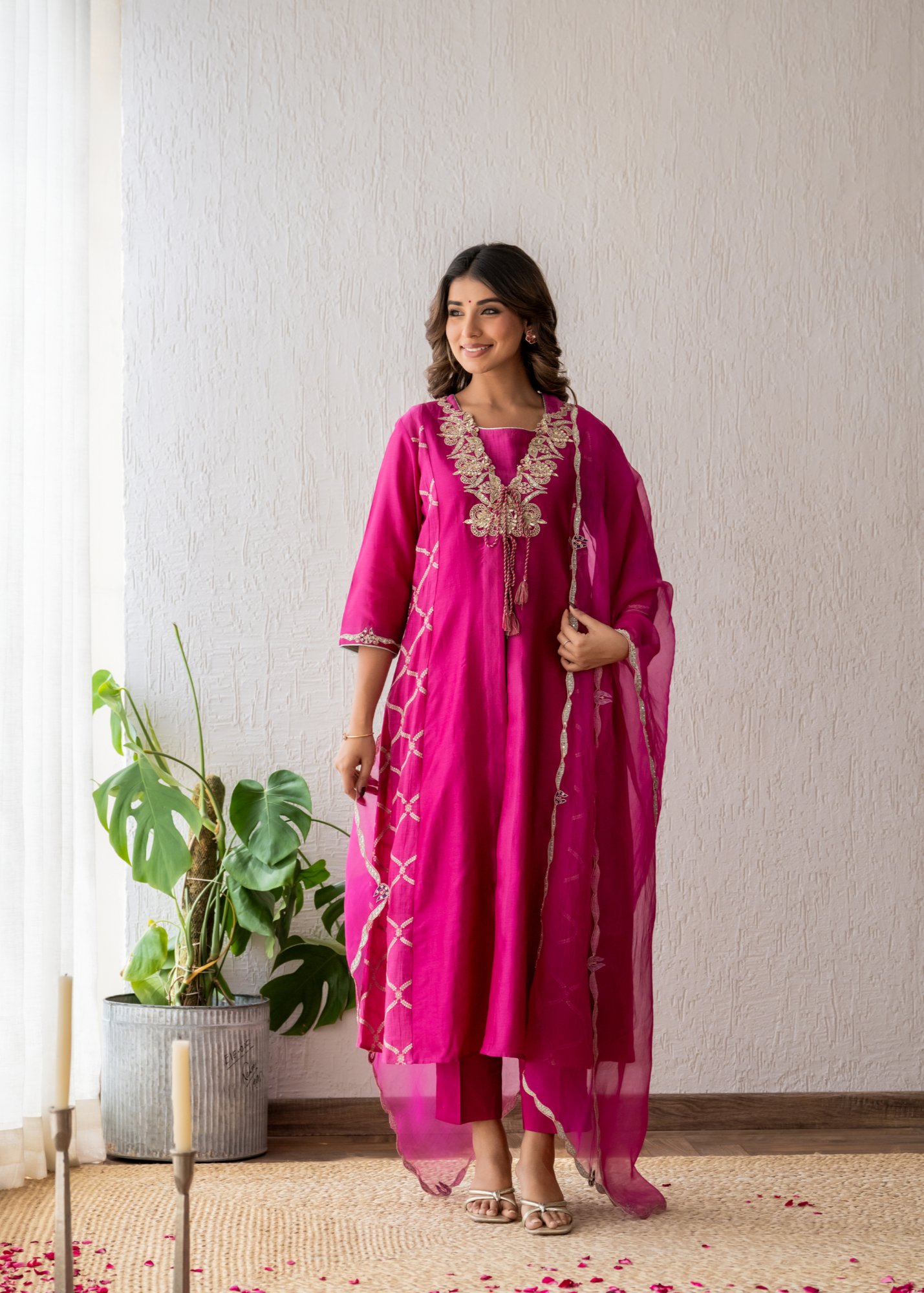 MATERIAL - Kurta : Chanderi | Pants : Cotton | Dupatta : Organza | Inner : Cotton